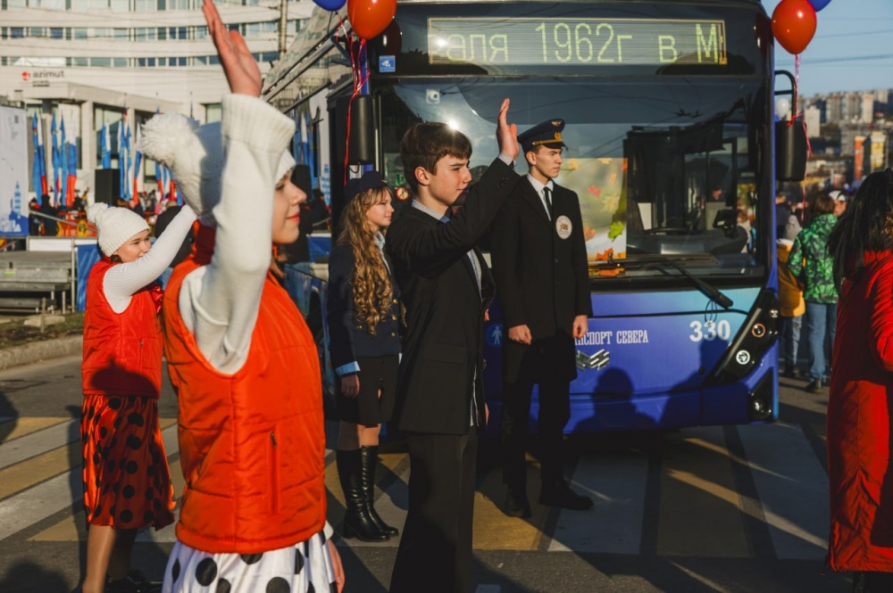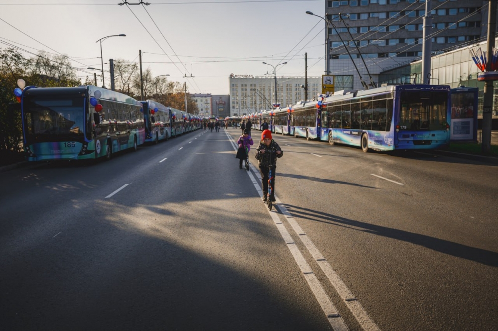 Сегодня на проспекте Ленина прошла праздничная презентация 30 новых троллейбусов. Они были открыты для посещения всеми желающими. Возле 10 транспортных единиц состоялись творческие презентации исторических эпизодов из жизни города, которые провели школьники и воспитанники домов творчества города Мурманска. После завершения программы троллейбусы отправились в свой первый рейс по городским маршрутам.