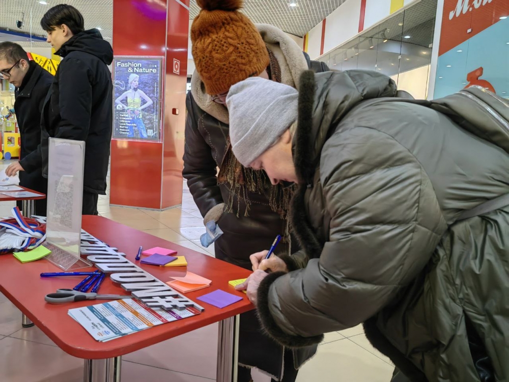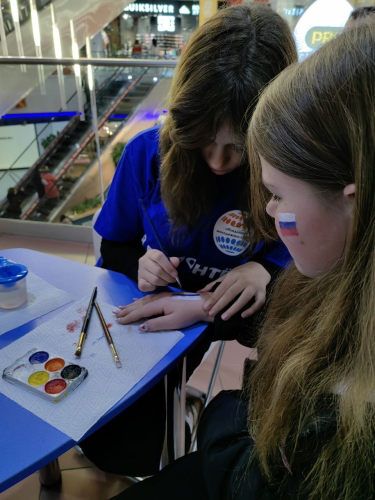 Сегодня в ТРК «Мурманск Молл» прошла акция «Сила людей в единстве». В создании праздничного настроения помогали волонтёры МАУ МП «Объединение молодёжных центров».
