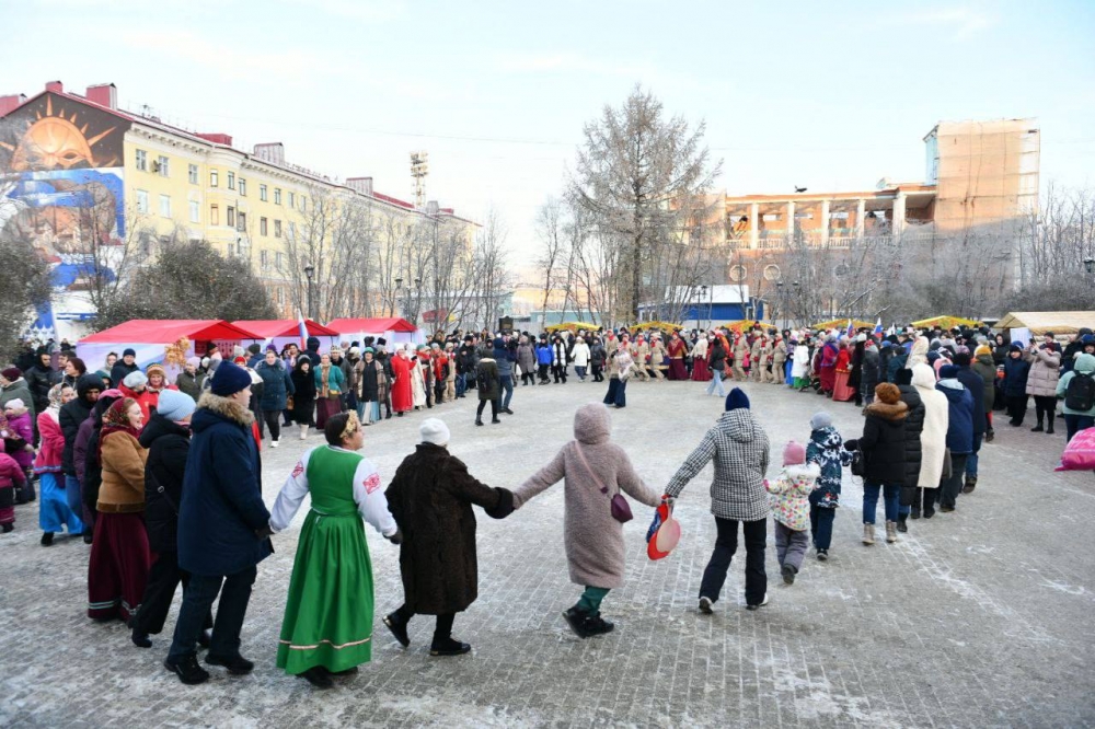 Ярким пунктом программы стал «Хоровод Единства», закруживший участников и гостей фестиваля. Затем начался митинг-концерт. С праздником северян поздравил губернатор Мурманской области Андрей Чибис.