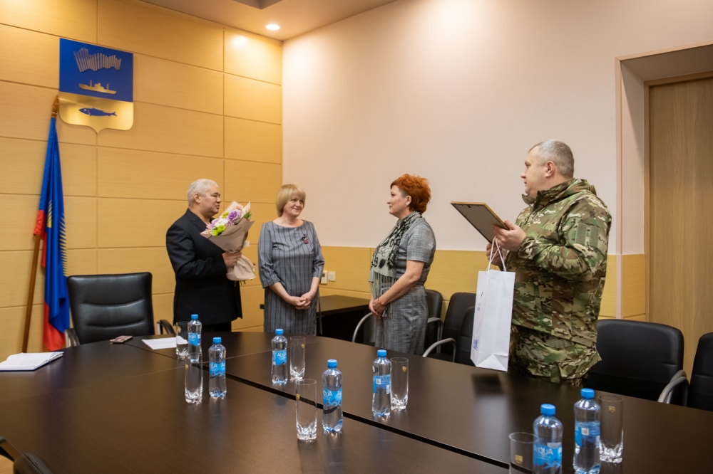 Сегодня в администрации города Мурманска в торжественной обстановке вручили благодарственное письмо губернатора Мурманской области участнику специальной военной операции, командиру отделения войсковой части Артёму Дуднику. В мероприятии приняла участие первый заместитель главы администрации города Мурманска Валентина Доцник.