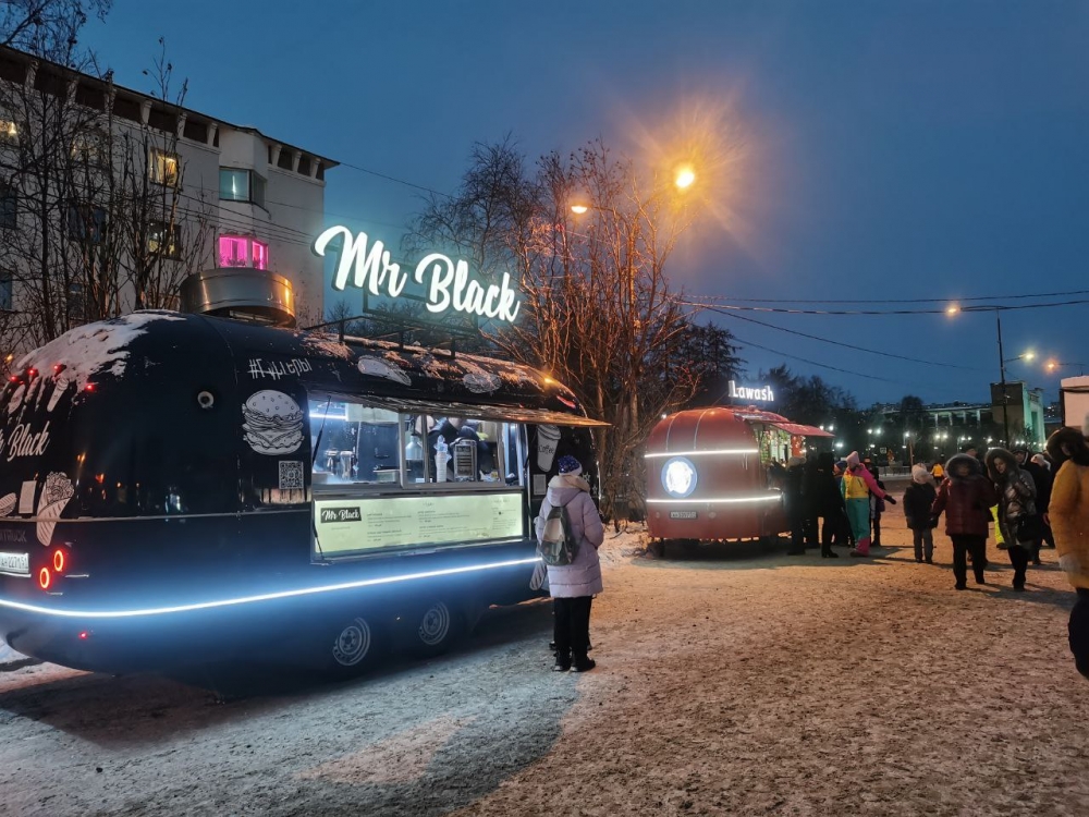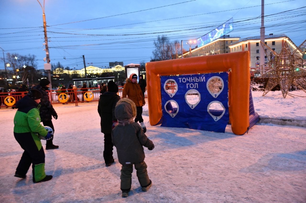 Рядом, на улице Воровского развернулась традиционная ярмарка «На Севере - тепло». Также ярмарочная новогодняя торговля продукцией общественного питания, горячими и холодными безалкогольными напитками организована на тротуаре вдоль улице Ленинградской с 8 до 22 часов в период 9 декабря 2023 года по 31 января 2024 года.