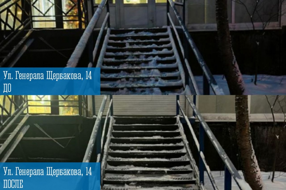 Встреча северян с главой Первомайского округа Николаем Зикеевым прошла возле дома №165 по просп. Кольскому. Жильцов задали вопросы о благоустройстве территории. Ранее северяне, проживающие в доме №16 по ул. Генерала Щербакова, обратились с просьбой отремонтировать горку на детской площадке. Также жители этого дома попросили вывезти строительные отходы с территории контейнерной площадки, расположенной возле дома. Все работы были выполнены. Жители дома №14 по ул. Генерала Щербакова пожаловались на нерасчищенную лестницу, ведущую к магазину со стороны главного фасада. По просьбе мурманчан лестница была очищена от снега и наледи.