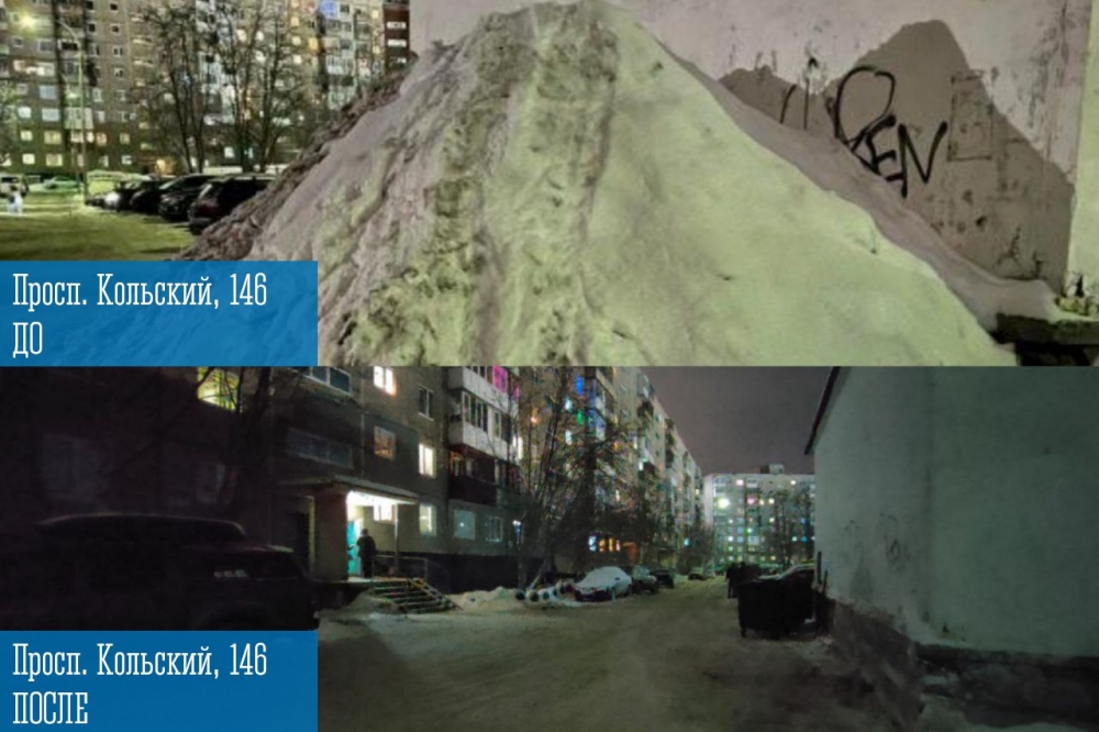 Жители дома №171 по просп. Кольскому пожаловались Николаю Зикееву на невывезенные с территории контейнерной площадки отходы, а жильцы дома №146 по просп. Кольскому попросили убрать снег от трансформаторной подстанции. Все работы также были выполнены.