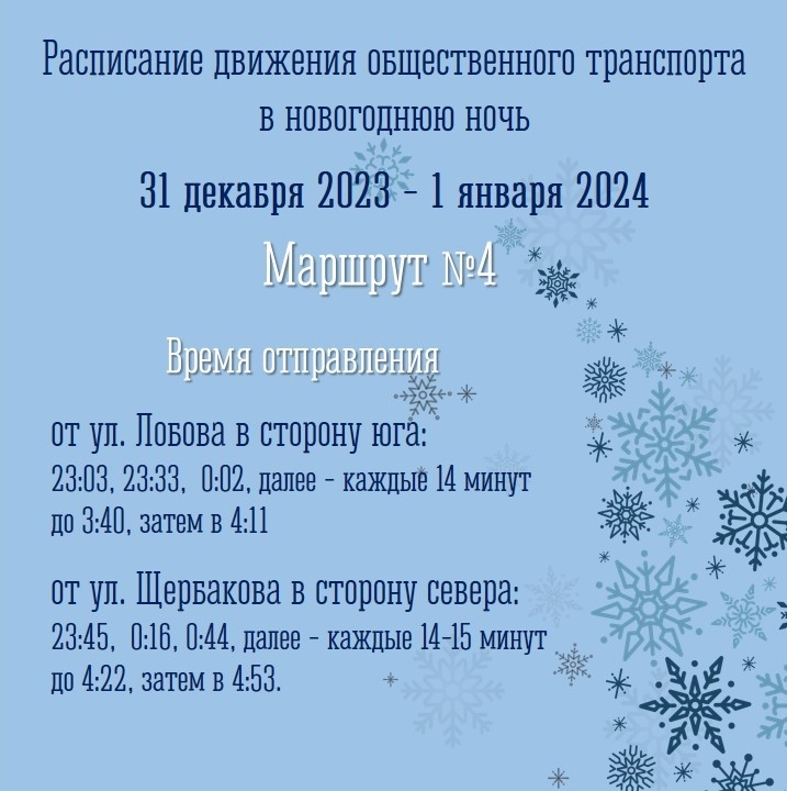 30.12.2023:Расписание работы общественного транспорта в новогодние праздники