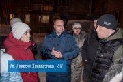 Еще одна встреча состоялась по адресу ул. Алексея Хлобыстова, 20/1. Вместе с главой округа пообщался с северянами депутаты Совета депутатов города Мурманска Аркадий Амозов и Ирина Матвеева. Горожане задали вопросы о содержании общего имущества и придомовой территории. Также жильцы дома пожаловались на граффити на входной двери в подъезд. Надпись оперативно была устранена. Среди других вопросов - отсутствие освещения в арке дома №68 по проспекту Героев-североморцев и подкозырькового освещения подъезда, плохая уборка подъезда, повреждение ограждения территории сквера «Аллея поколений», расчистка двора от снега, недостаточная температура воздуха в квартирах, необходимость санитарной обрезки деревьев на придомовой территории.