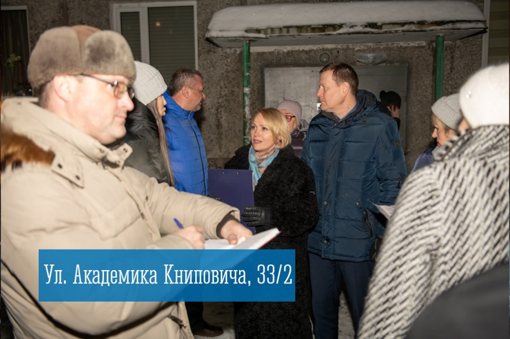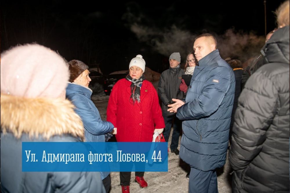 Глава Ленинского округа Андрей Костин и депутат Совета депутатов города Мурманска Татьяна Ковалева встретились с жителями дома №44 по ул. Адмирала флота Лобова. Они пожаловались на разукомплектованный автомобиль, оставленный во дворе. После встречи транспортное средство было вывезено. На встречу также пришли мурманчане, проживающие по другим адресам. Их вопросы касались ремонта проезжей части во дворах, ремонта входных групп и лестничных клеток в подъездах, расчистки территории от снега в зимний период, неудовлетворительного состояния подвальных помещений.