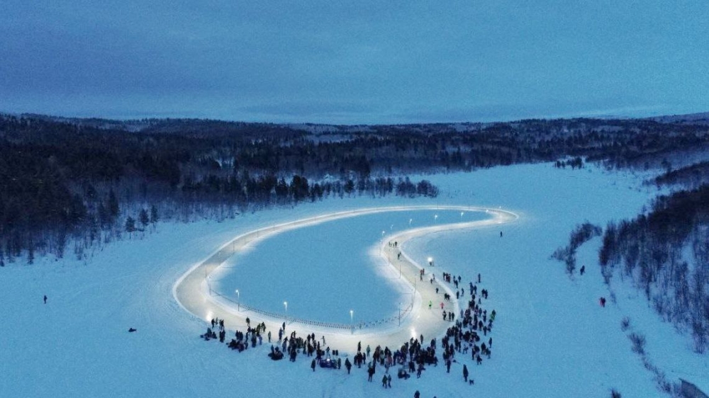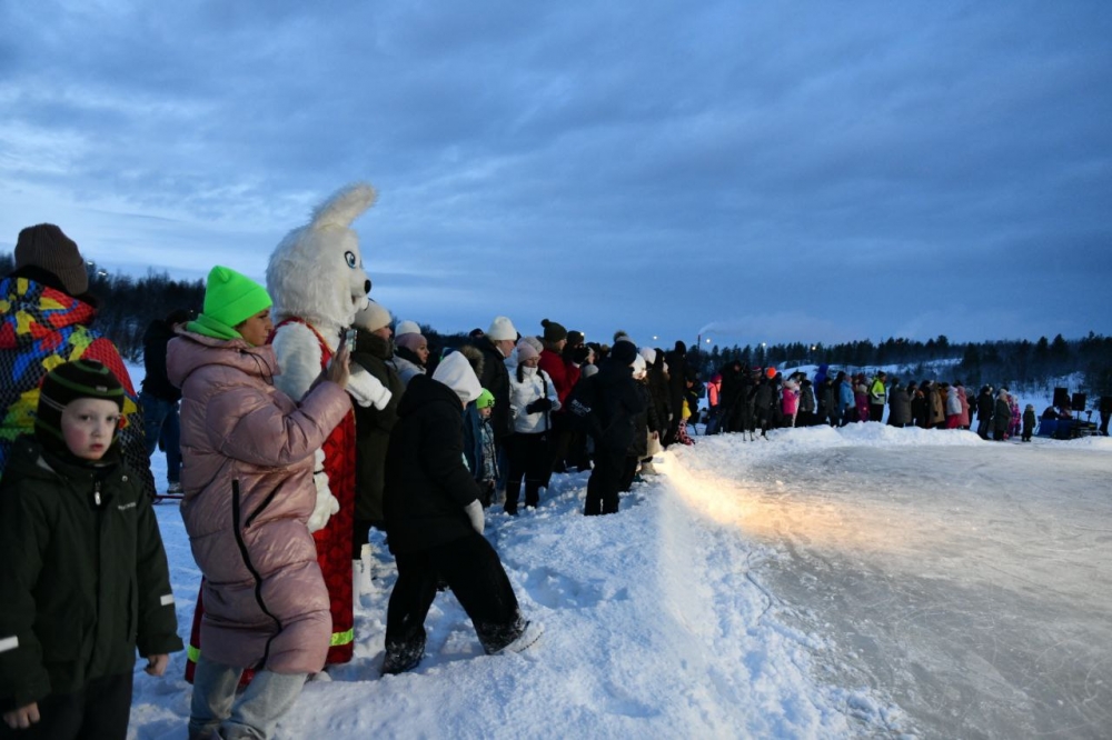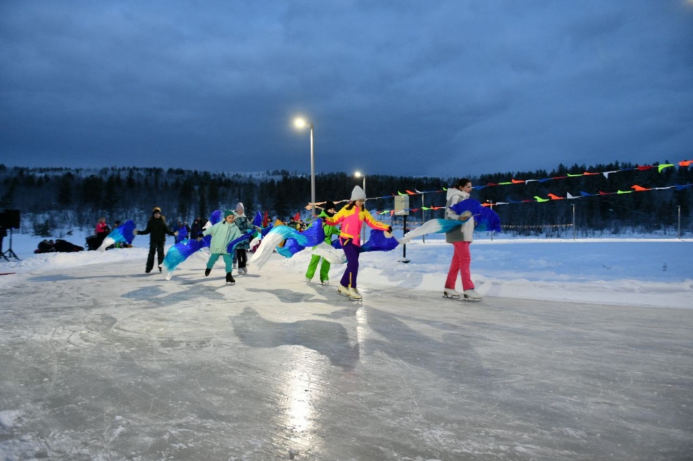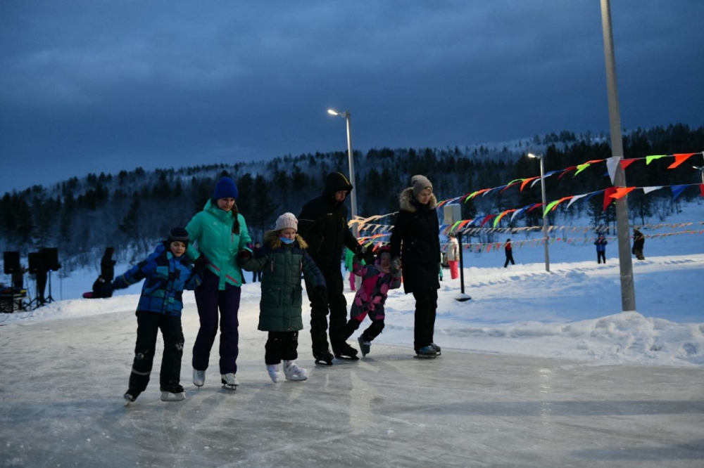 Это единственное в Мурманске оборудованное и освещенное место для катания на коньках, расположенное на льду естественного водоема.