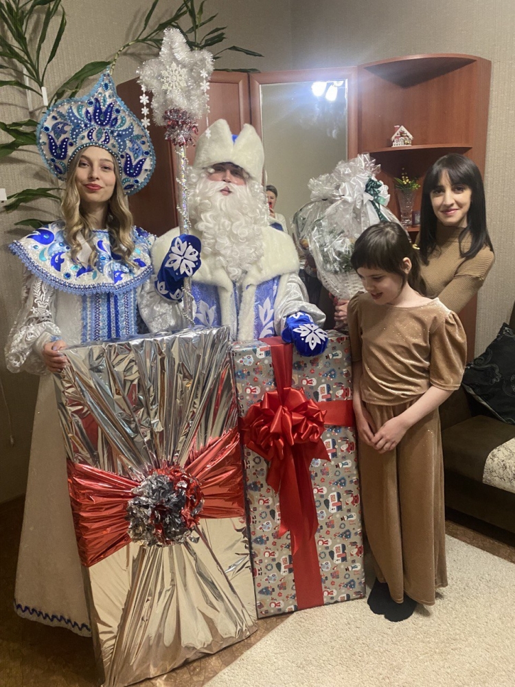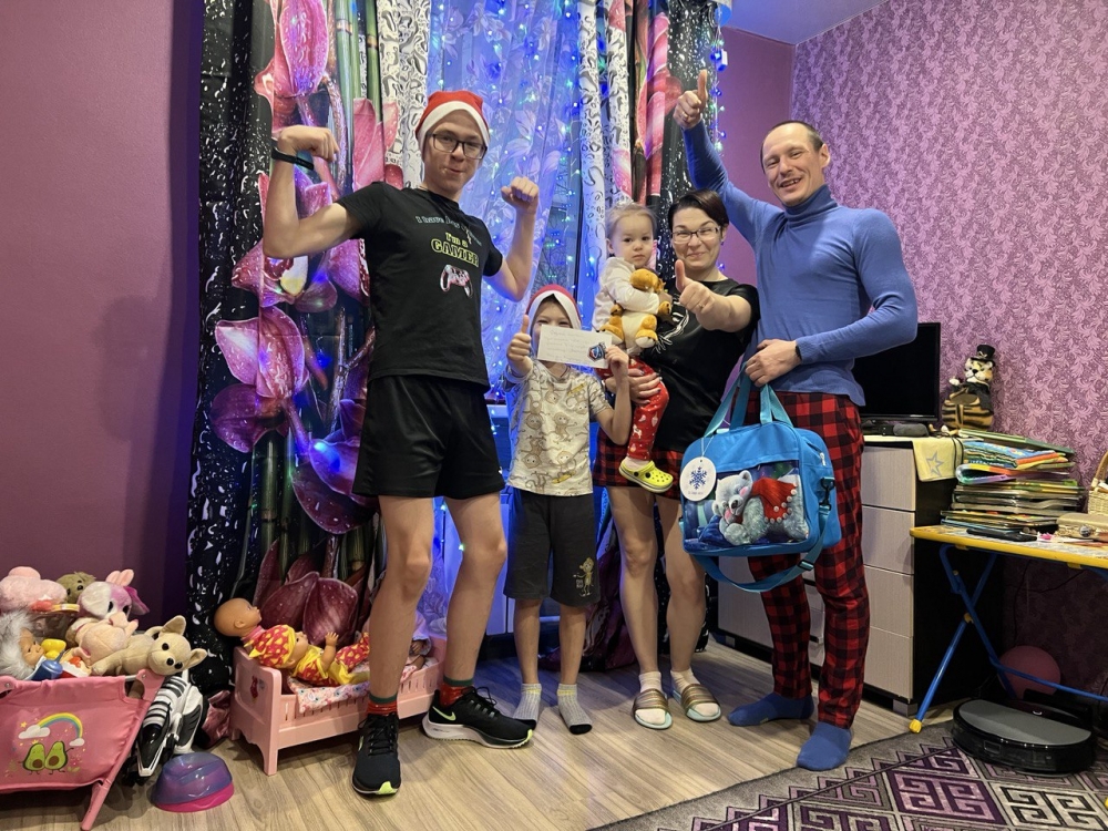 Братья из многодетной семьи получили свои подарки от начальника управления Октябрьского округа Елены Ширшовой. 14-летний Егор получил на Новый год кроссовки для легкой атлетики, а 7-летний Матвей — приглашение на тренировку ХК «Арктика» от президента Федерации хоккея Мурманской области Андрея Нифантьева. Маленькая сестренка ребят тоже не осталась без подарка — 2-летней девочке достался сладкий подарок и развивающая игра.