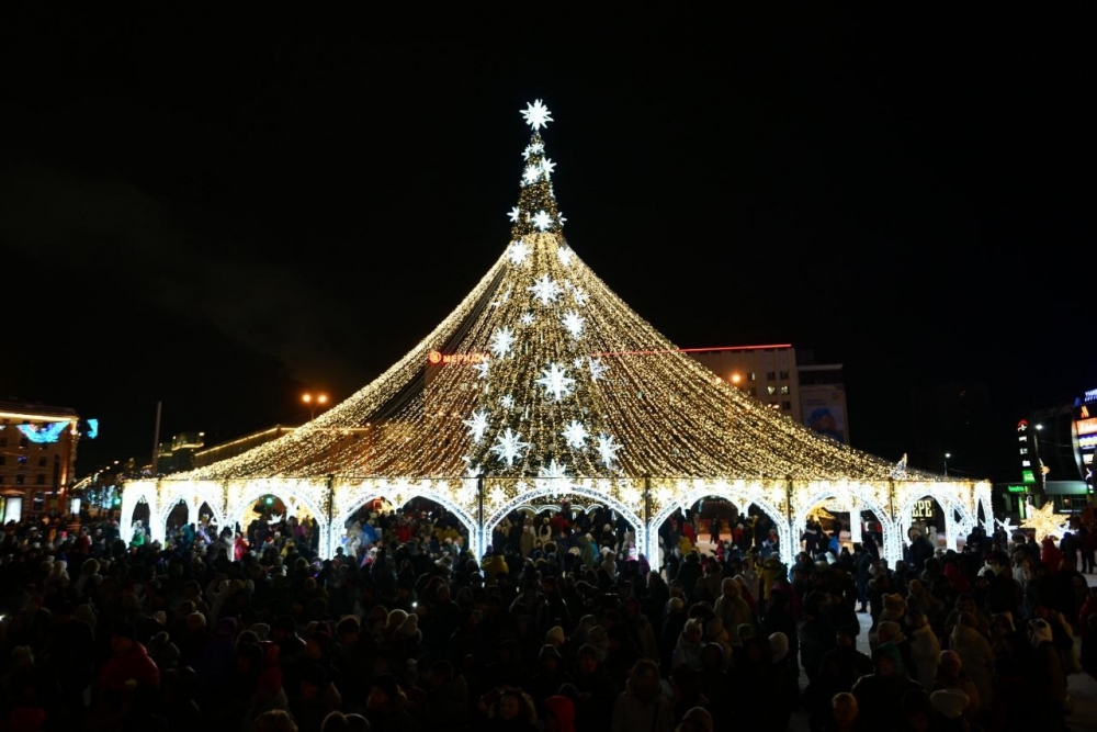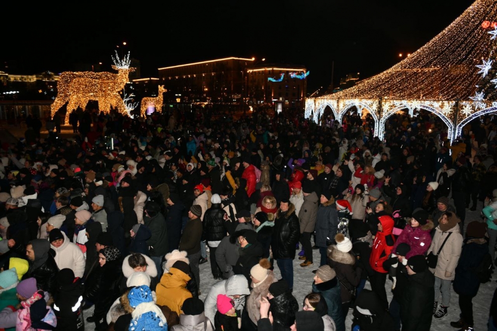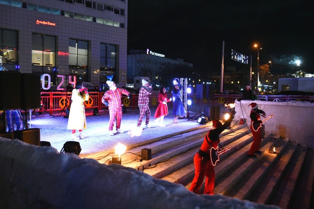 Праздничная программа в честь нового 2024 года развернулась сегодня ночью в центре города.