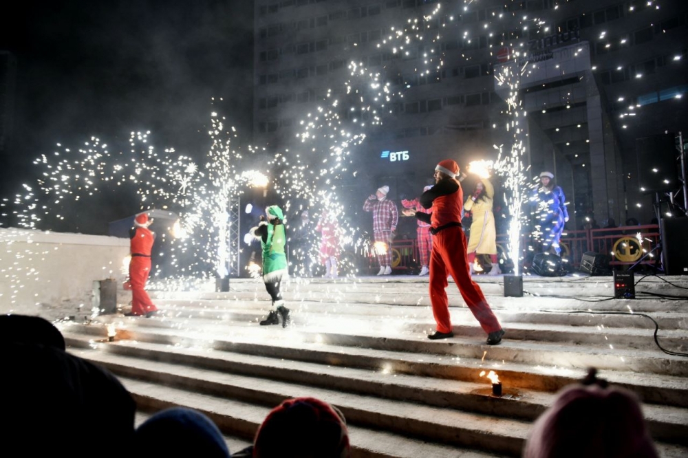 Несмотря на мороз, северяне собрались возле главной елки Мурманска. Со сцены жителей и гостей заполярной столицы поздравили Дед Мороз и Снегурочка. Заряд веселья и праздничного настроения добавили шоу-группа «МимоНот» и команда «Ифрит», которые подготовили для мурманчан танцевальную разминку и огненное шоу.