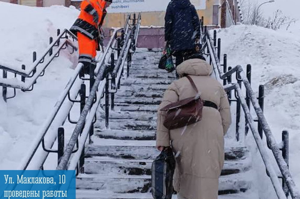 Еще одна встреча состоялась по адресу ул. Ломоносова, 21/10. С мурманчанами пообщались и.о. главы Первомайского округа Евгений Филиппов и депутат Совета депутатов города Мурманска Елена Сердюк. Ранее жильцы дома №15/3 по ул. Зои Космодемьянской обращали внимание на несвоевременную очистку от снежных масс козырька подъезда и недостаточную подсыпку тротуара. Все вопросы были оперативно решены.
