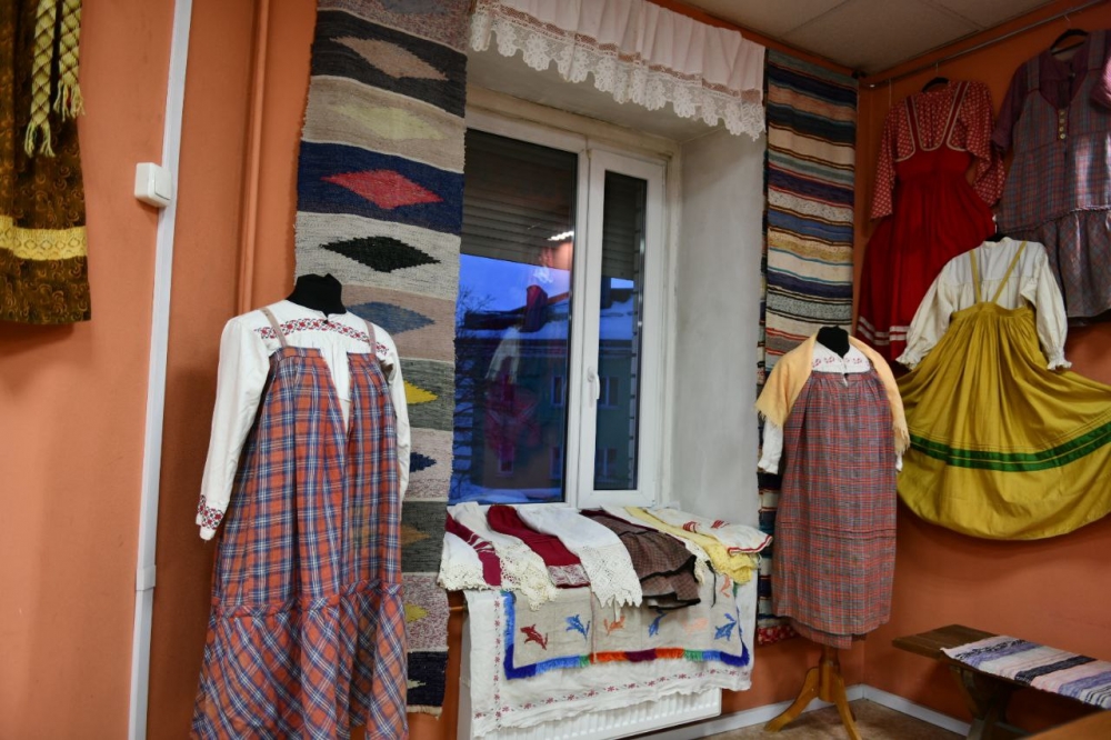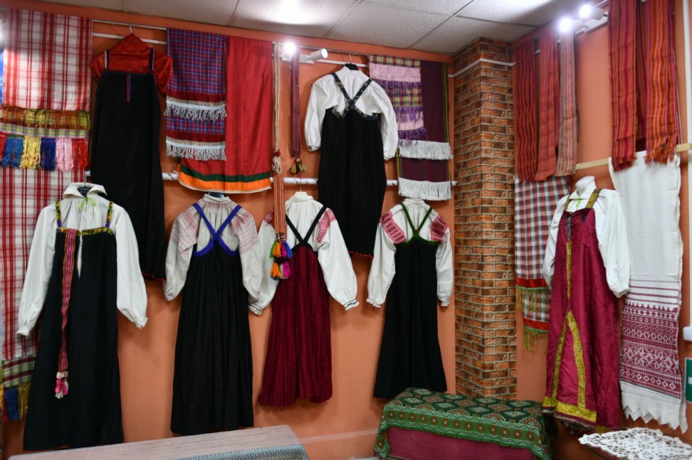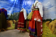 В экспозицию «Красный сарафан» вошли предметы из собрания музея народного быта и традиционных ремёсел Русского национального культурного центра «Рябиновый край». На выставке представлены подлинные этнографические сарафанные комплексы разных регионов России, а также домотканые вещи, созданные для украшения избы.