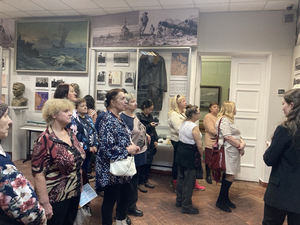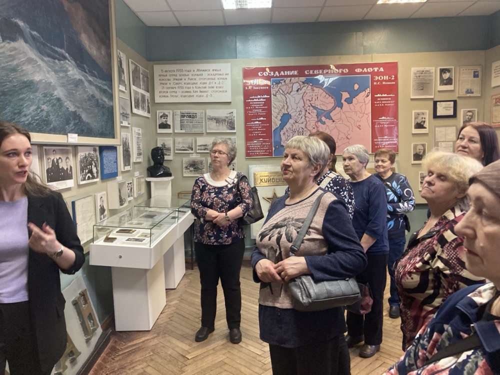 В этот раз участники клуба посетили Военно-Морской музей Северного флота (ул. Александра Торцева, 15). Экспонаты, находящиеся в нем, собирались с 1943 года. Основой экспозиции стали трофеи, документы, материалы времен Великой Отечественной войны. Каждый объект обладает способностью раскрыть непростую, но интересную историю создания, развития и становления Краснознаменного Ордена Ушакова Северного флота, который является несокрушимым форпостом Арктики.