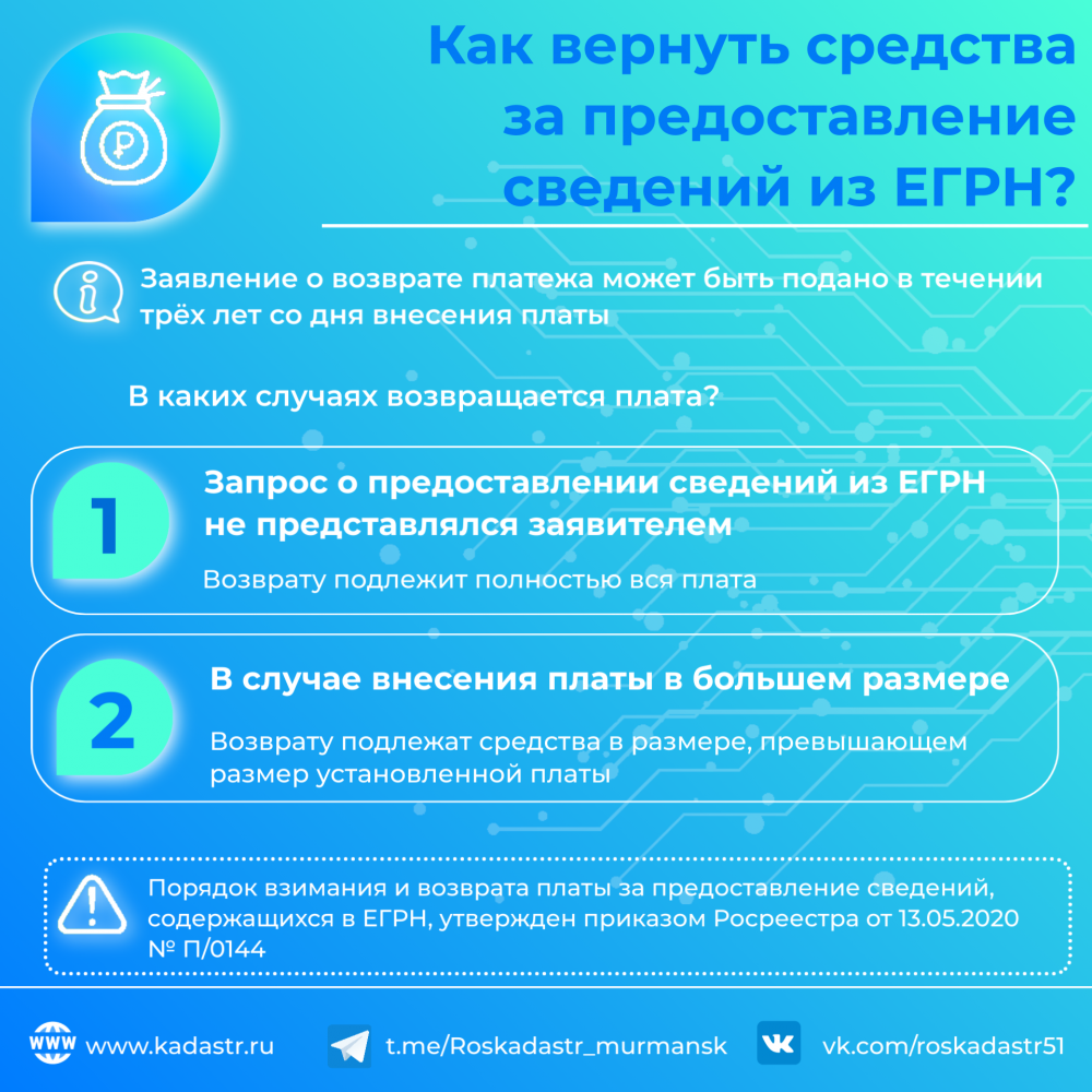 Как вернуть деньги за предоставление сведений из ЕГРН?