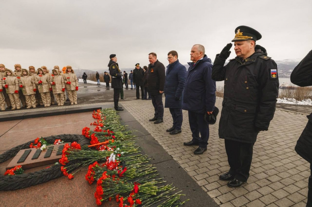 Еще одно памятное мероприятие состоялось у мемориала «Защитникам Советского Заполярья в годы Великой Отечественной войны 1941-1945 годов». Там прошла церемония возложения цветов к Вечному огню.