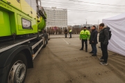 Каждый желающий мог ознакомиться с выставленными машинами, такими как вакуумный погрузчик, аварийно-техническая мастерская, автогрейдер, самосвалы, дизель-генераторная установка, комбинированная илососно-каналопромывочная, плужно-щеточная машины и другими.