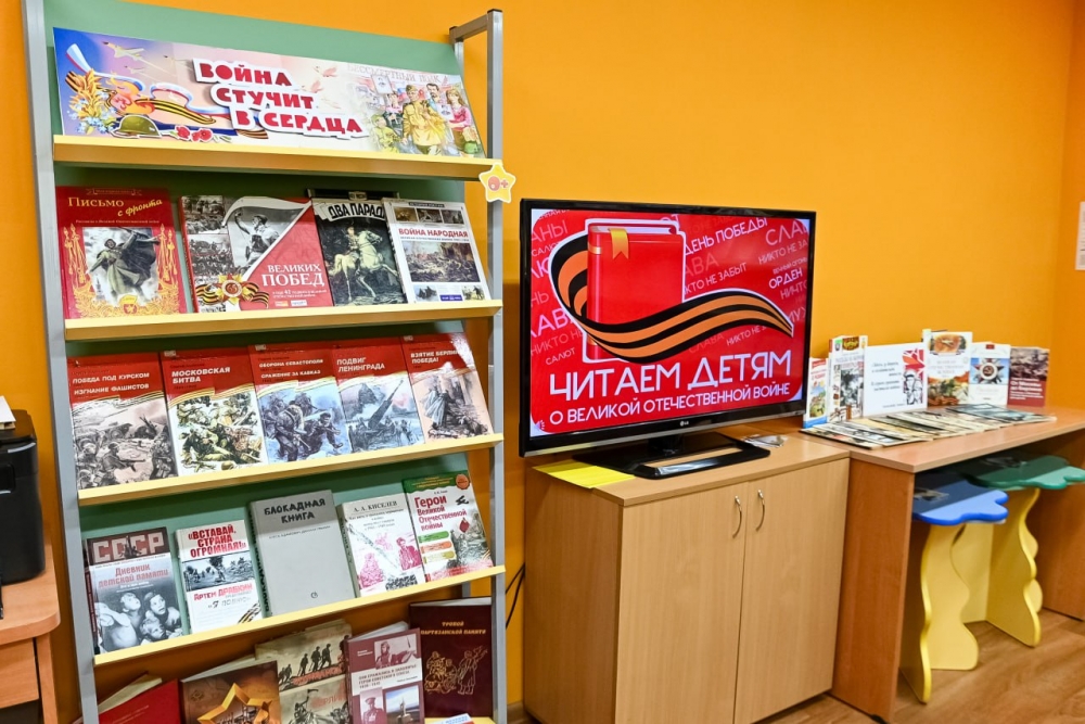 В филиале № 5 (просп. Героев-североморцев, 27) для чтения были выбраны рассказы из серии книг «Дедушкины медали», в каждой из которых повествуются собственные истории авторов, прошедших Великую Отечественную войну. Дети познакомились с книжной выставкой «Война стучит в сердца», на которой предложены к прочтению произведения об этих страницах российской истории.