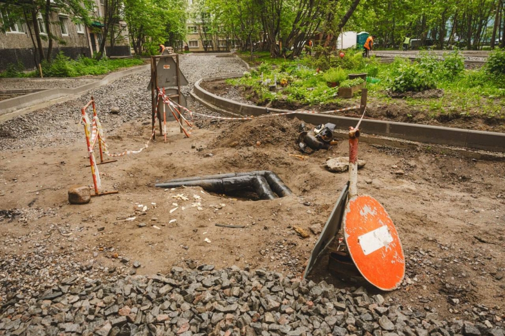 Сегодня ход работ на одном из объектов оценил глава администрации города Мурманска Юрий Сердечкин. Между домами №№ 22, 24 на улице Академика Книповича подрядчик выполнил устройство щебеночного основания проезжей части, завершил установку бортового камня и проложил резервные трубы.