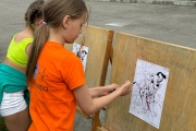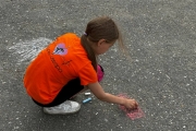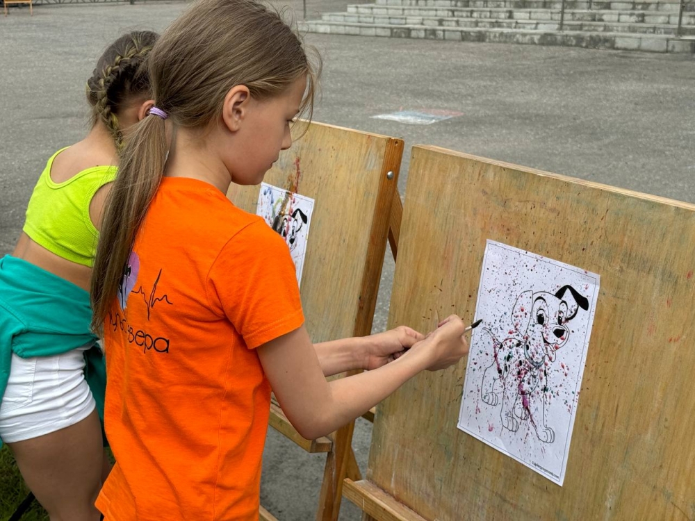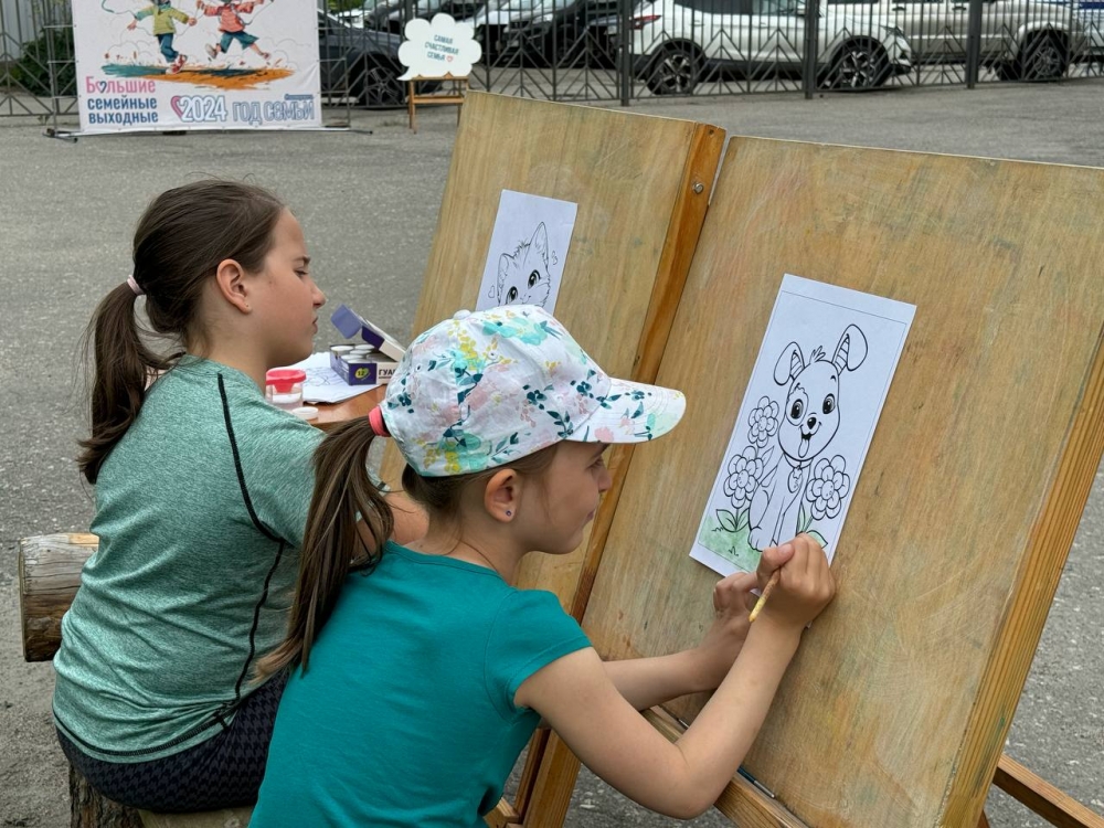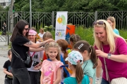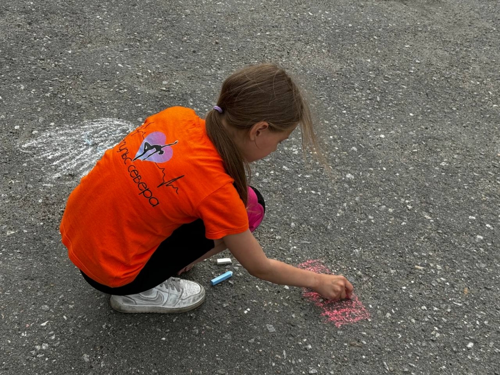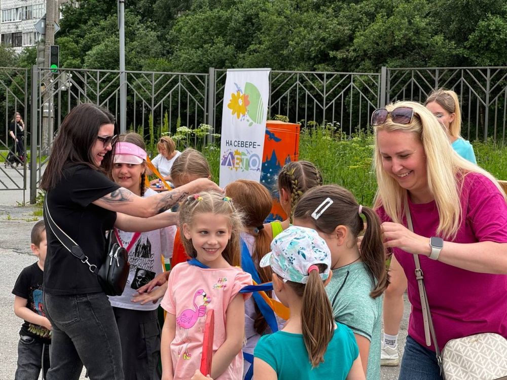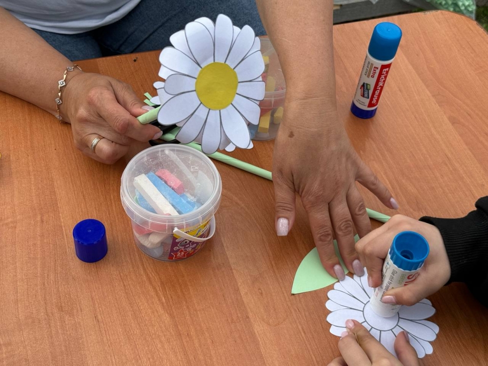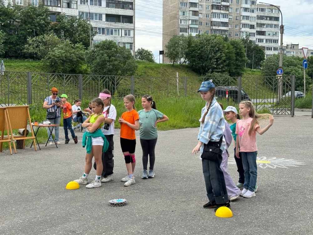 Энергичный аниматор провел для ребят интересные эстафеты с ромашками и крендельками. Особенный интерес у юных мурманчан вызвали живопись на мольбертах и рисование на асфальте цветными мелками. Также всем желающим наносили аквагрим, давали мастер-класс по изготовлению ромашек из бумаги.