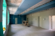 В настоящее время завершены все подготовительные работы, выполнена чистовая отделка, обшивка стен, подготовка под линолеумный пол, заменены оконные блоки, противопожарные двери, система отопления с радиаторами, установлен электрический счетчик.