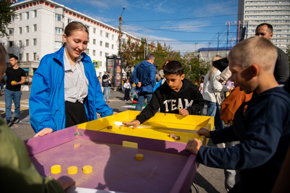 В центре города на площади Пять Углов развернулся масштабный детский праздник: работали интерактивные тематические зоны с развлечениями, посвященные основным школьным предметам, юных гостей развлекали аниматоры, а также прошла праздничная концертная программа при участии молодых талантов Мурманска. Напутственные слова ученикам и их родным произнесла со сцены заместитель главы администрации города Мурманска Людмила Левченко.