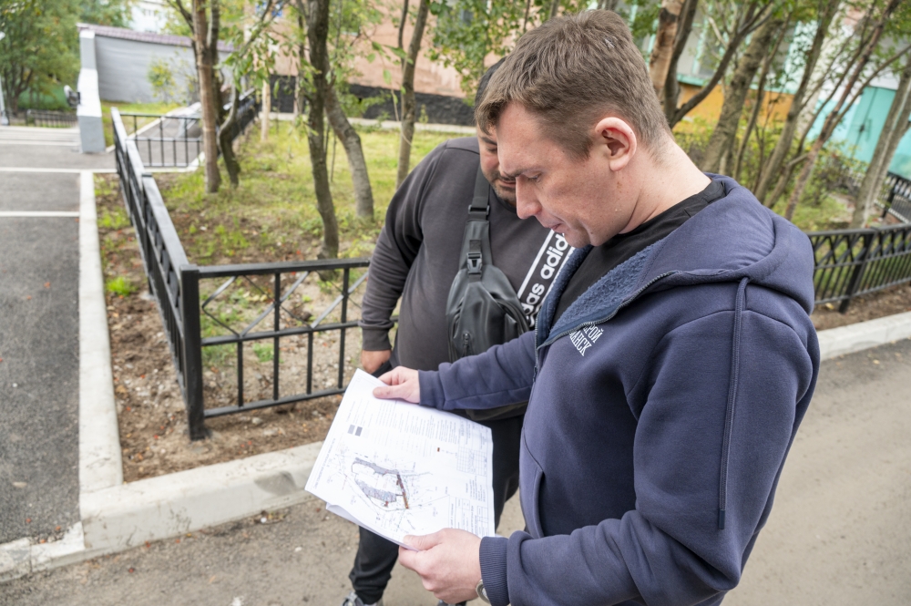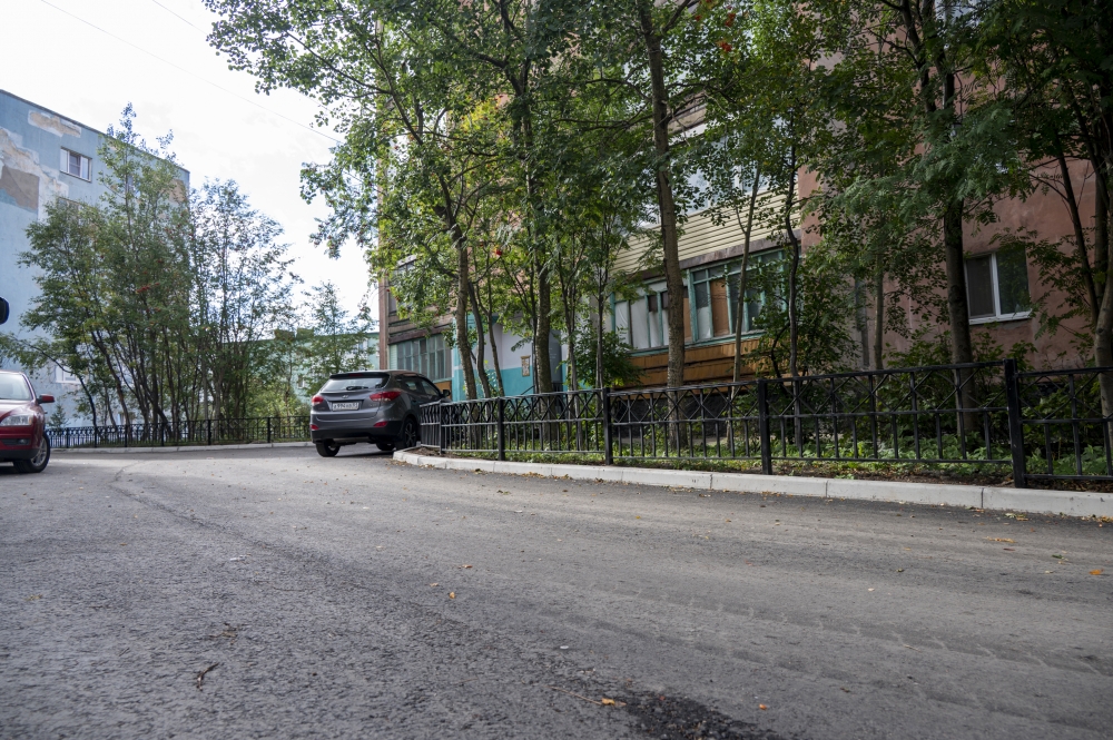 Так, на улице Радищева, 14 корп. 1 подрядчик отремонтировал почти 700 квадратных метров проезжей части, 121 квадратный метр пешеходных тропинок, подпорную стенку, установил 7 новых опор наружного освещения. Сегодня двор посетил заместитель главы администрации города Мурманска — председатель комитета по развитию городского хозяйства Никита Нерубащенко.