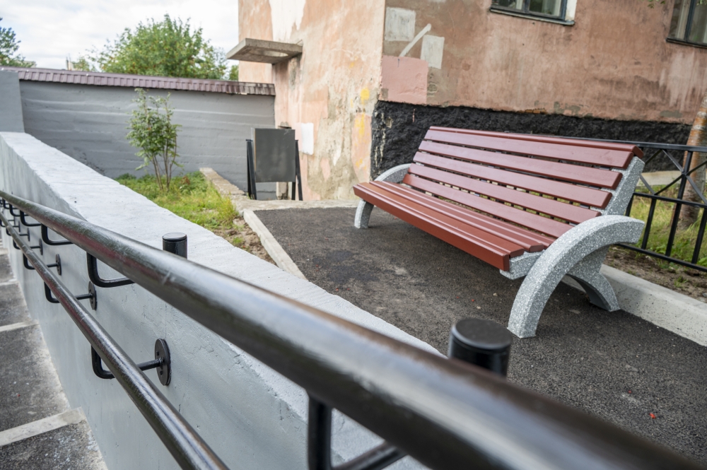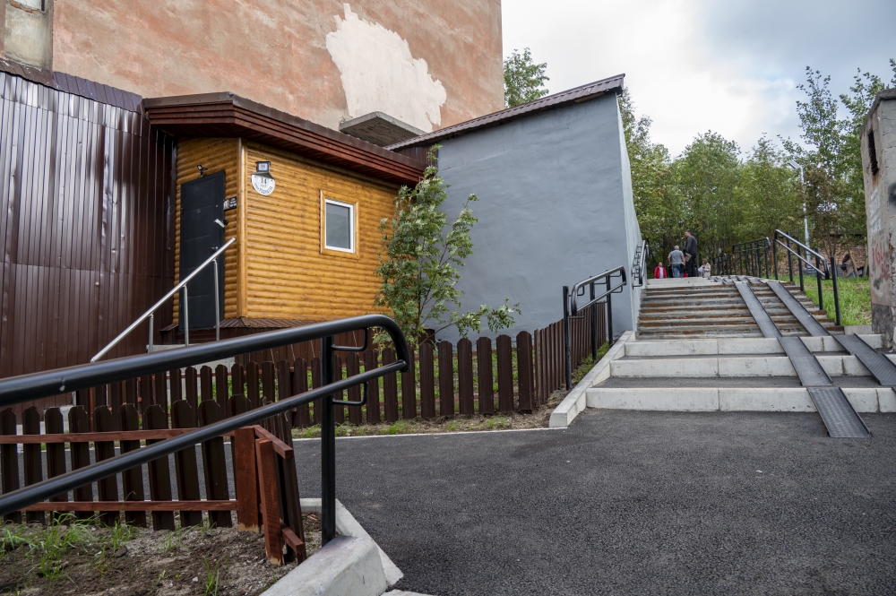 Дом находится на возвышенной местности, поэтому большую важность для жителей имеет лестница, ведущая к остановке общественного транспорта. Ее также привели в порядок, установили перила и пандусы.