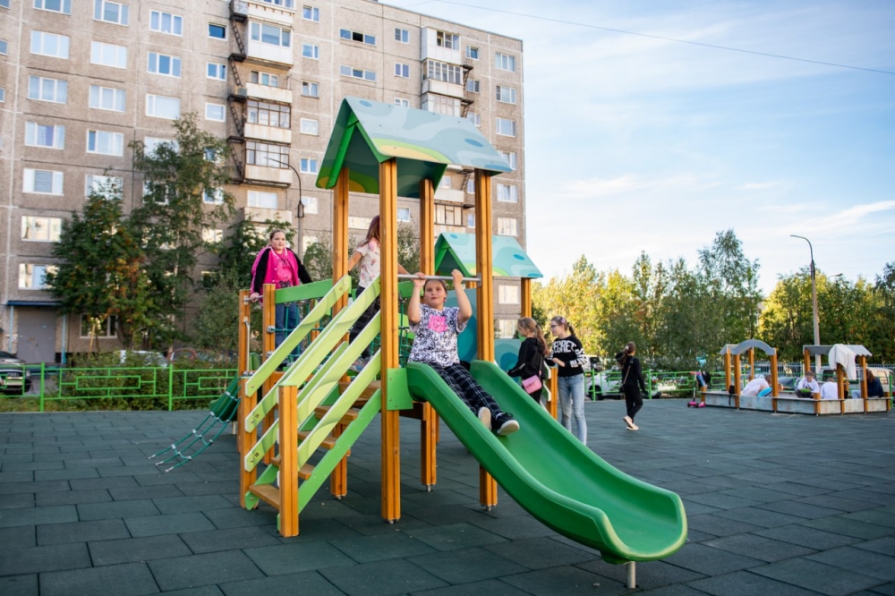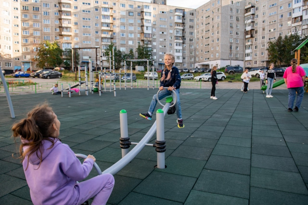 Еще одна детская площадка появилась в Первомайском округе города Мурманска благодаря программе «На Севере – твой проект» в рамках плана «На Севере - жить!» при поддержке губернатора Мурманской области Андрея Чибиса.