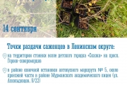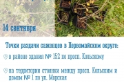 Так же, для самостоятельного озеленения подготовлено 7 тысяч саженцев, которые будут бесплатно раздаваться на нескольких точках с 11:00 до 12:00.