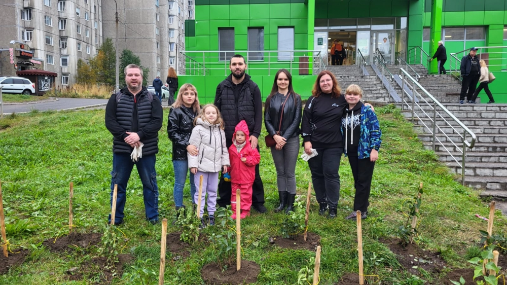На зеленой зоне по проспекту Кольскому 150/1 появились 200 кустов сирени. Кроме того, поблизости была организована выдача бесплатных саженцев для самостоятельного озеленения. Такие же точки были открыты с 11 до 12 часов во всех округах областного центра – в рамках акции мурманчане получили 7 тысяч растений.