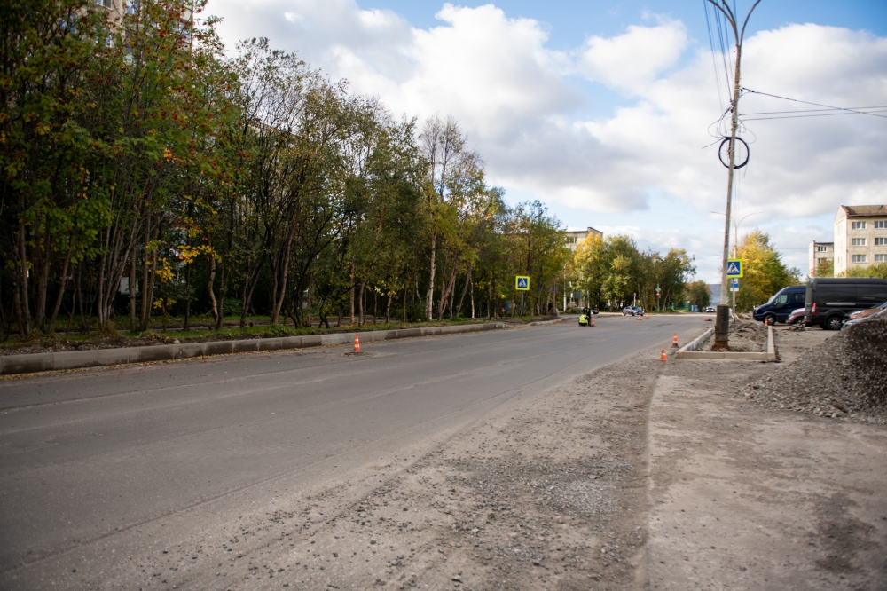 На проспекте Героев-североморцев (от Верхне-Ростинского шоссе до ул. Александрова) завершены дорожные работы на проезжей части в рамках нацпроекта «Безопасные качественные дороги». Протяженность участка составила 800 метров. Также обновлен тротуар в рамках стратегического плана «На Севере — жить!» на средства областного дорожного фонда.