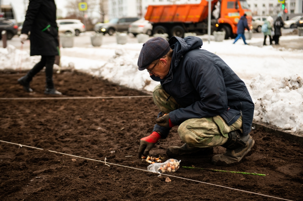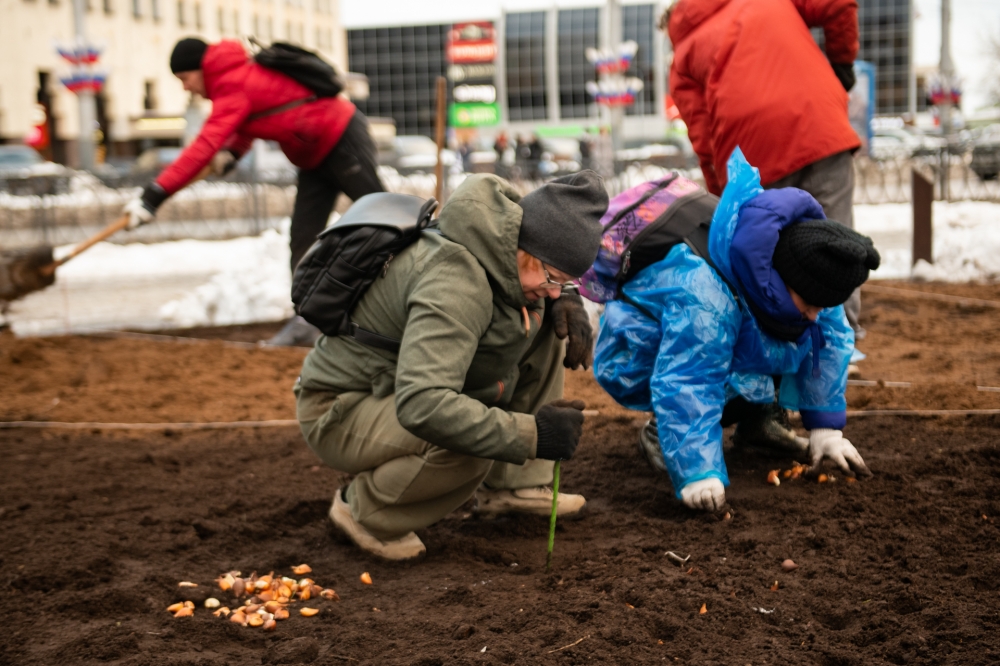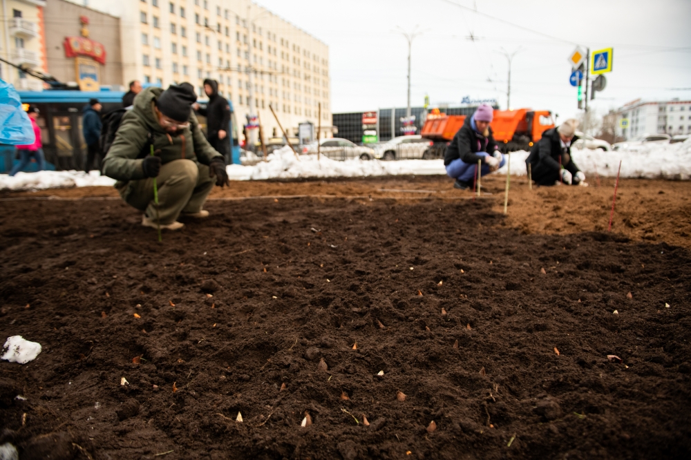 В качестве эксперимента специалисты МАУК «Мурманские городские парки и скверы» высадили луковицы тюльпанов в центре города, Первомайском и Ленинском округах.