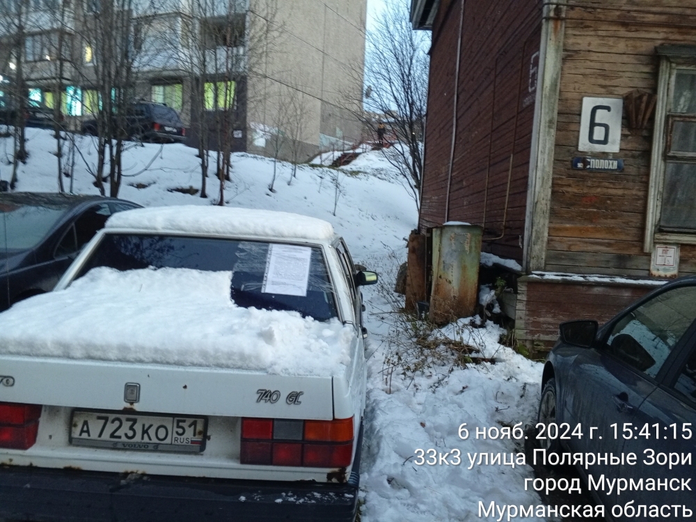 Управление Октябрьского административного округа города Мурманска просит собственника/пользователя автотранспортного средства «VOLVO» с государственным регистрационным номером А 723 КО 51, стоящего на придомовой территории многоквартирного дома № 6 по ул. Сполохи, в течение месяца со дня опубликования объявления представить правоустанавливающие документы на данный объект (транспортное средство) отдел по контролю за исполнением административного законодательства управления Октябрьского административного округа города Мурманска по адресу: город Мурманск, улица Комсомольская, д. 10, каб. 205, телефон: 45-58-89, 45-85-95.