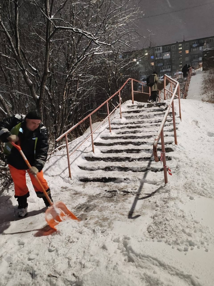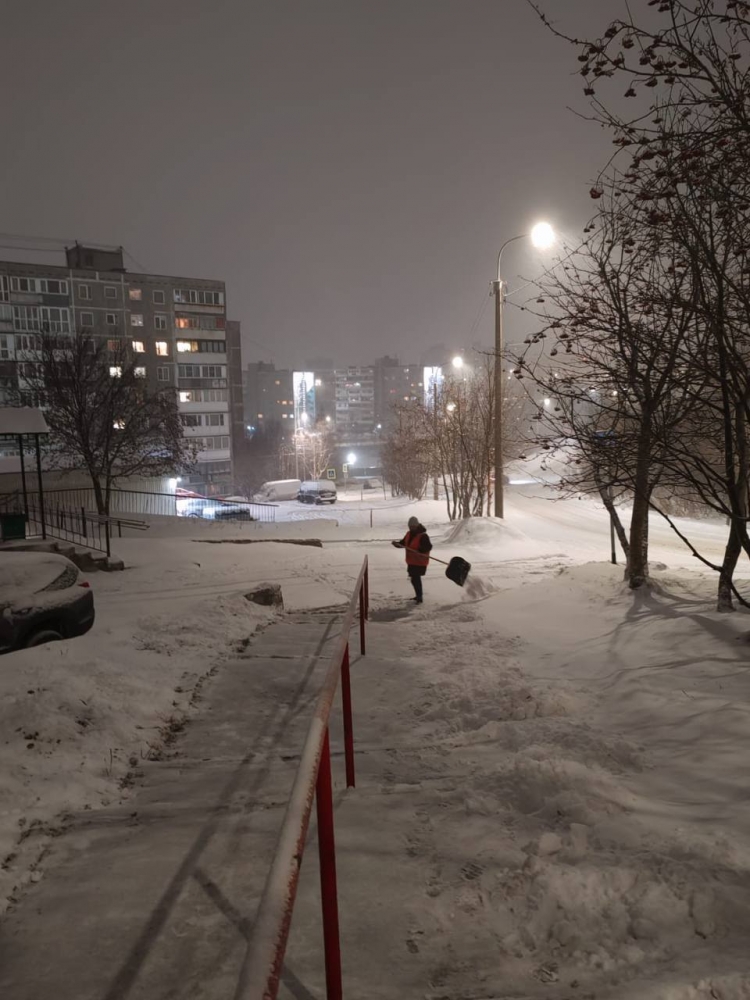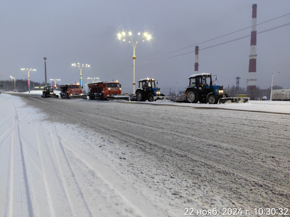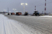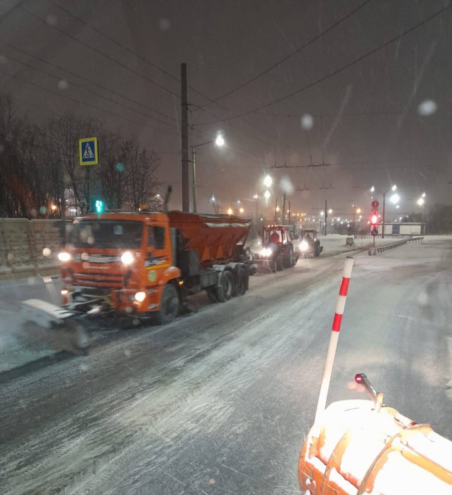 В ночную и дневную смену проводятся снегоуборочные работы на основных городских магистралях: подметание и сгребание снега, обработка противогололедными материалами и вывоз снега.