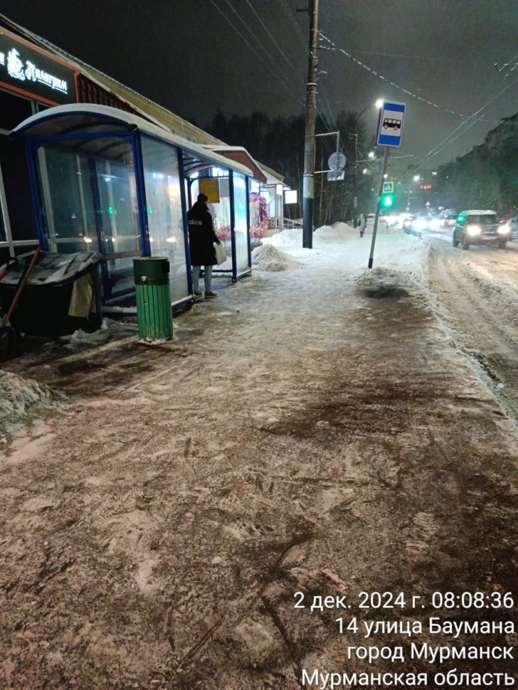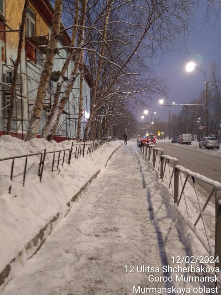 Также очищены тротуары по проспекту Кирова, по улице Коминтерна, по улице Капитана Буркова на участке от улицы Карла Маркса до улицы Академика Книповича, по улице Профессора Сомова в районе дома №3, по улице Полярной Правды, по улице Старостина на участке от улицы Капитана Маклакова до проезда Северный, по улице Карла Маркса в районе дома №1 на участке от улицы Челюскинцев до проспекта Ленина (нечётная сторона), по улице Карла Маркса на участке от улицы Софьи Перовской до улицы Капитана Буркова.