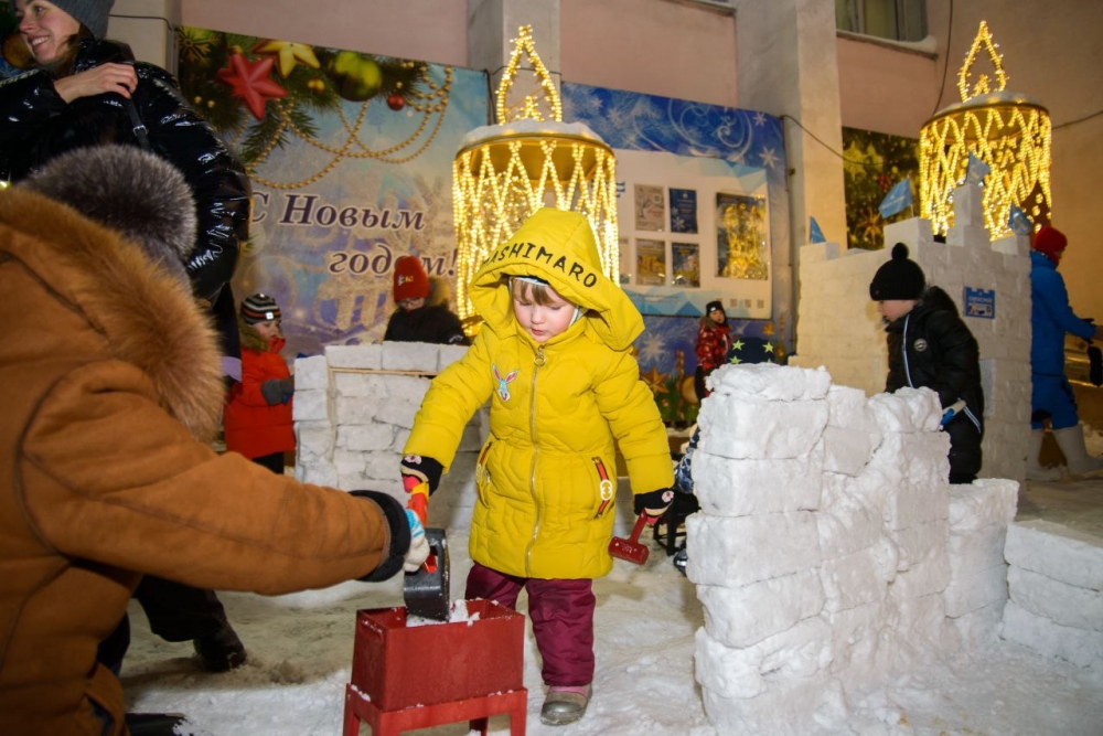 На площади перед ДК «Судоремонтник» (район Росляково, ул. Заводская, 1) северяне помогли пиратам украсить пальму, чтобы те отметили Новый год в Африке.