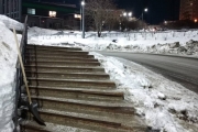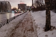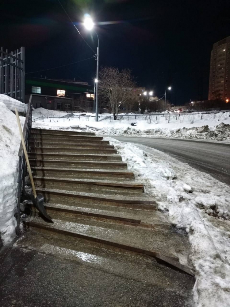 В усиленном режиме продолжается обработка дорог, тротуаров и лестниц противогололедными материалами. За предыдущие сутки использовано 452 тонны пескосоляной смеси. Для устранения зимней скользкости работает 17 комбинированных дорожных машин и пескоразбрасывателей.