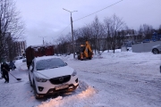 Выполнена механизированная уборка и обработка противогололедными материалами дворовых проездов по 48 адресам: