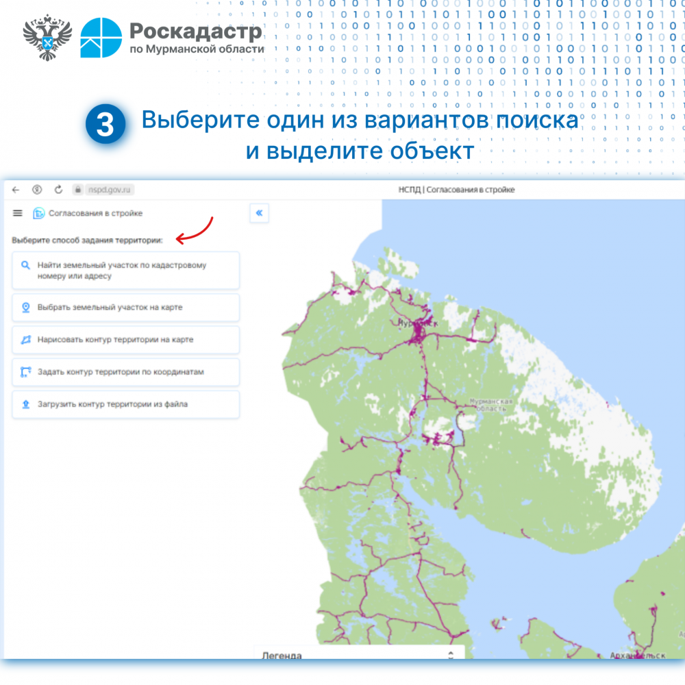 поиск и экспорт сведений о территории, необходимых для подачи заявления на получение государственных услуг по согласованию строительства;