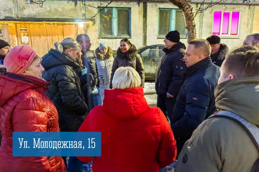 Начальник управления Ленинского административного округа Андрей Костин и депутат Совета депутатов города Мурманска Ирина Матвеева провели встречу около дома № 15 по ул. Молодежной в районе Росляково. Жильцы высказали пожелание об установке детской площадки и дополнительного освещения между домами № 15 и № 17. Они отметили плохое состояние асфальтобетонного покрытия на въезде во двор и обратили внимание на незакрытый колодец. Фасаду дома, входным группам и подъездам, по мнению жильцов, требуется ремонт.