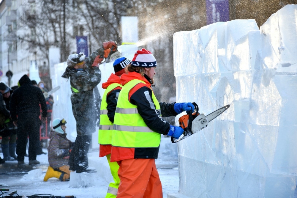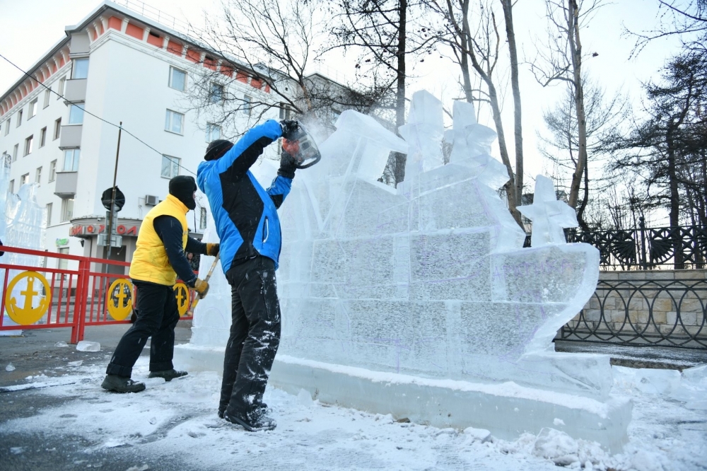 Уникальное шоу развернулось на улице Ленинградской: всего за полтора часа 20 мастеров ледяных скульптур на глазах у зрителей превратили глыбы льда в замечательные скульптуры.