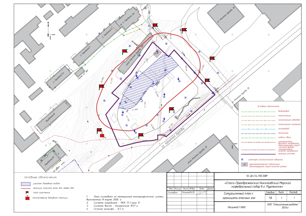 ООО «ЭКС» информирует о том, что при строительстве объекта: «Спасо-Преображенский Николаевский Морской кафедральный собор в г. Мурманске» с 1 по 30 апреля с 16 до 19 часов (резервное время с 11 до 13 часов) запланировано производство взрывных работ.