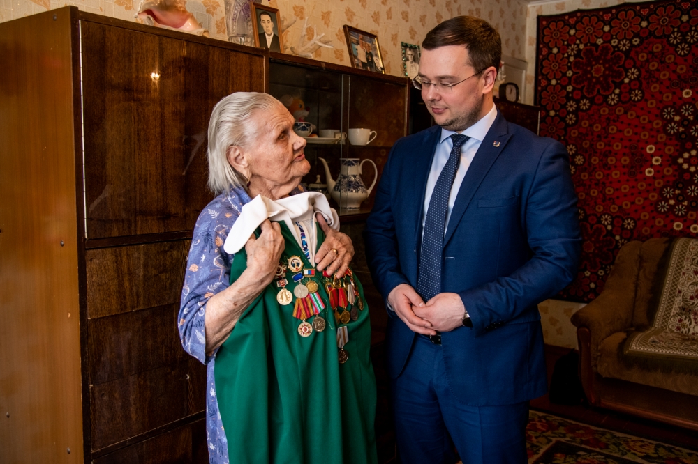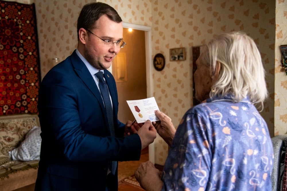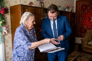 Медаль «80 лет Победы» вместе с памятным подарком и букетом белых хризантем вручил Марии Михайловне первый заместитель главы города Мурманска Иван Лебедев. В ходе беседы мурманчанка показала гостю семейный фотоальбом и свои награды, среди которых – Орден Отечественной войны, медаль Жукова и знак «За доблестную службу в Заполярье».