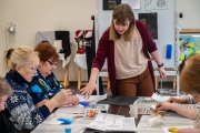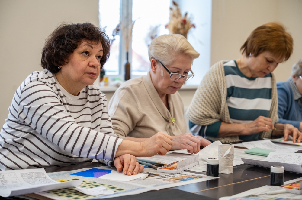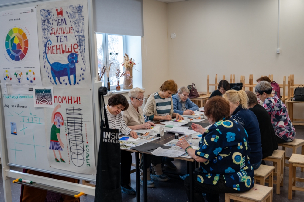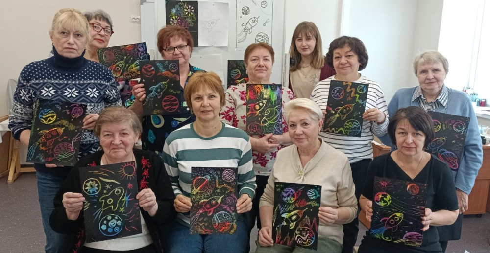 Утро пятницы участники социального проекта «Творчество вне возраста» провели в стенах Детской художественной школы (ул. Полярной Дивизии, 1/16). В этот раз творческий мастер-класс был посвящен теме «Космос» в честь предстоящего праздника. Особенностью занятия стала техника исполнения рисунка — «граттаж».