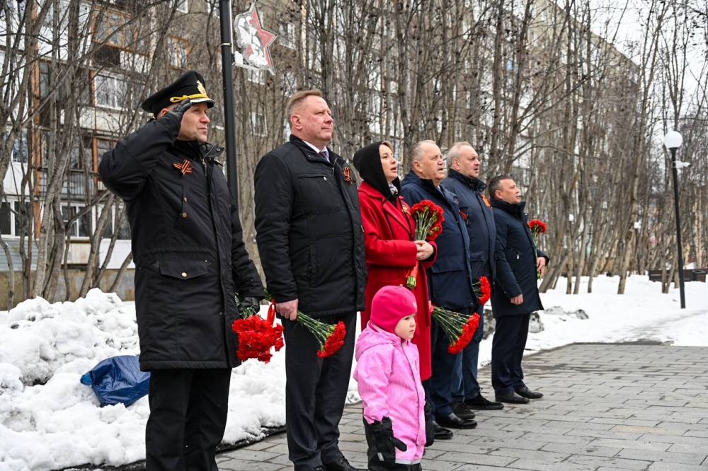 В возложении цветов к подножию памятника приняли участие губернатор Мурманской области Андрей Чибис, председатель Мурманской областной Думы Сергей Дубовой, глава города-героя Мурманска Юрий Сердечкин.
