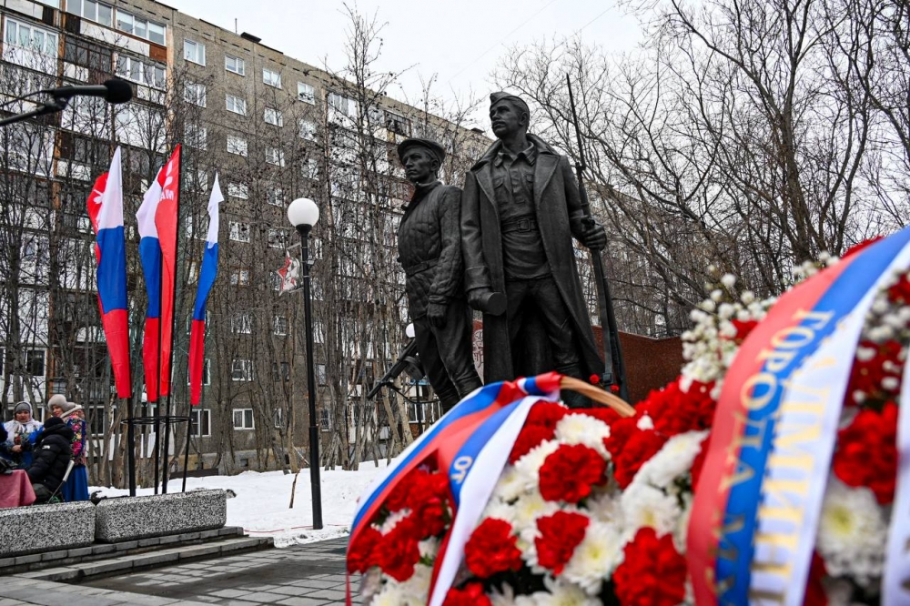 Камень на месте будущего памятника Полярной дивизии — легендарному соединению народного ополчения, в начале войны остановившему врага на подступах к городу, — был заложен на проспекте Героев-североморцев еще в 1991 году. В 2016-м заполярные общественники наконец выступили с практической инициативой о создании мемориала. В результате широкого обсуждения проектов памятника был выбран эскиз скульптора Александра Арсентьева, изображающий боевых товарищей — рабочего-ополченца и солдата-красноармейца. Монумент был установлен и открыт в октябре 2020 года, накануне Дня города. Он стал архитектурной доминантой нового общественного пространства — аллеи Полярной дивизии, созданного благодаря нацпроекту в зеленой зоне, прилегающей к домам № 76 корпус 1 и 78 корпус 1 по проспекту Героев-североморцев. Сегодня аллея и памятник — одна из достопримечательностей Мурманска, любимое место прогулок жителей Ленинского округа и площадка проведения массовых мероприятий патриотического характера.