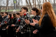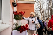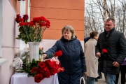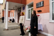 Затем в торжественной обстановке была открыта мемориальная доска, к которой присутствовавшие возложили цветы.