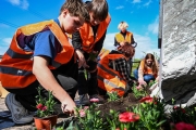 Так, 3 июня группа мурманской молодежи работала в районе дома № 36 по улице Карла Маркса, где расположен памятный знак полному кавалеру ордена Славы разведчику Ивану Бородулину. Ребята высадили у памятника и на окрестных клумбах 460 саженцев китайской гвоздики.