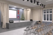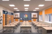 Согласно проекту, внутренне убранство школы будет выполнено в цветах, естественных для заполярной природы: сером, зеленом, оранжевом, синем. Стены актового зала украсит изображение северного леса, а сам зал будет легко трансформироваться в спортивный и танцевальный.