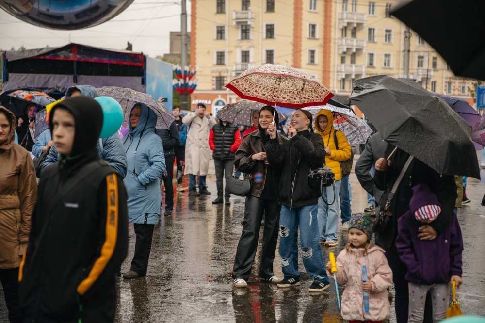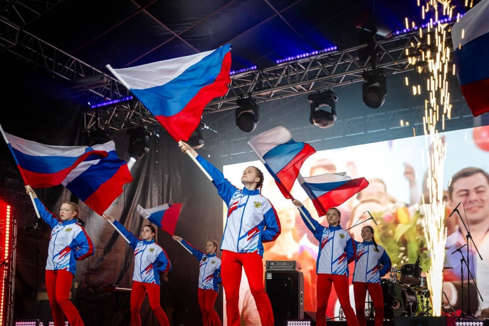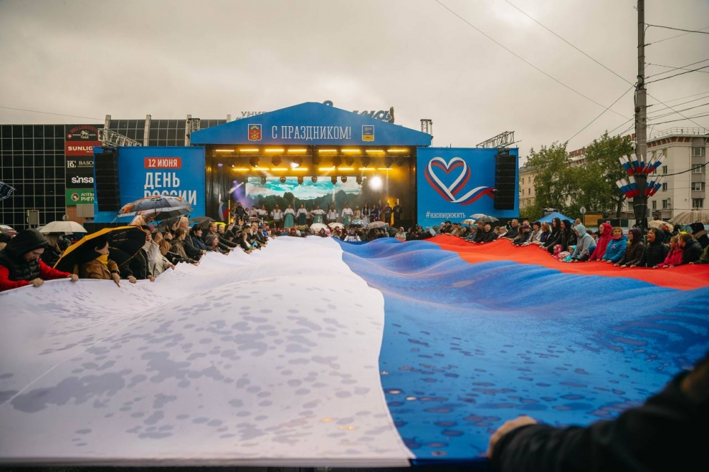 Концерт, посвящённый государственному празднику, состоялся на площади перед ГДДЦ «Меридиан». Перед началом выступлений творческих коллективов областного центра северяне водили хоровод и приняли участие в акции по разворачиванию многометрового триколора.